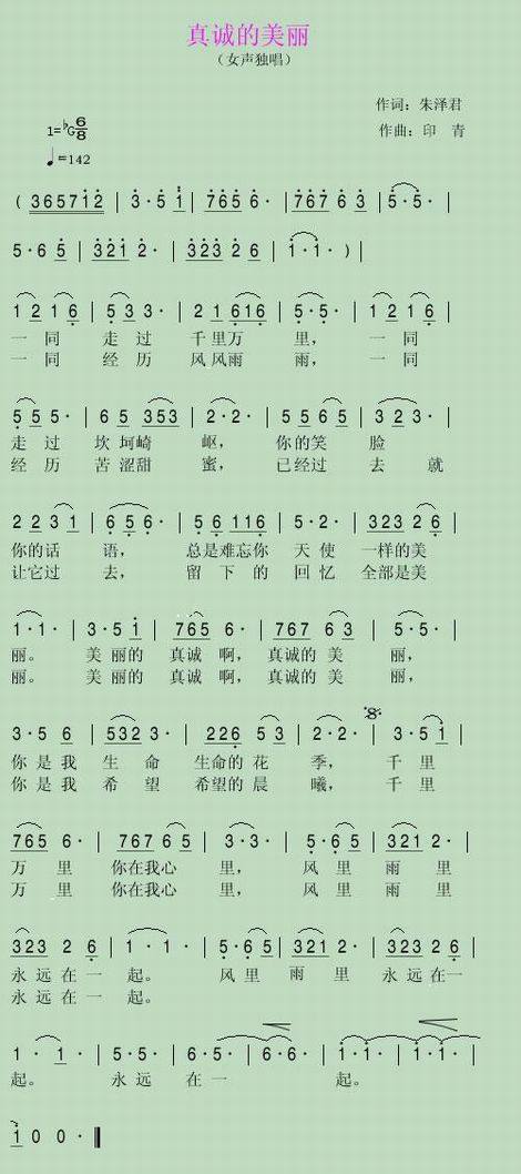 真诚的美丽-王莉(简谱 歌谱 歌曲简谱 合唱简谱 影视简谱)
