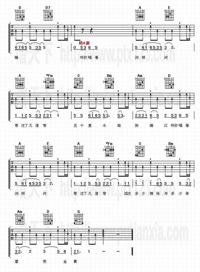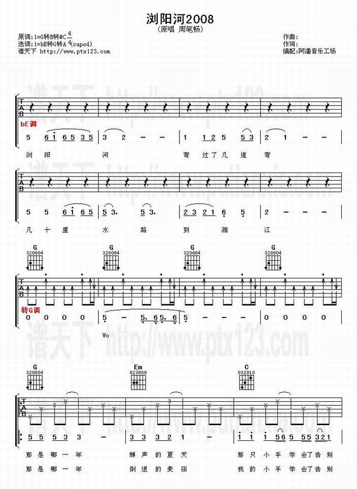浏阳河2008-周笔畅(吉他谱 吉他曲谱 吉他六线谱 吉他歌谱 吉它谱 影视吉他谱)