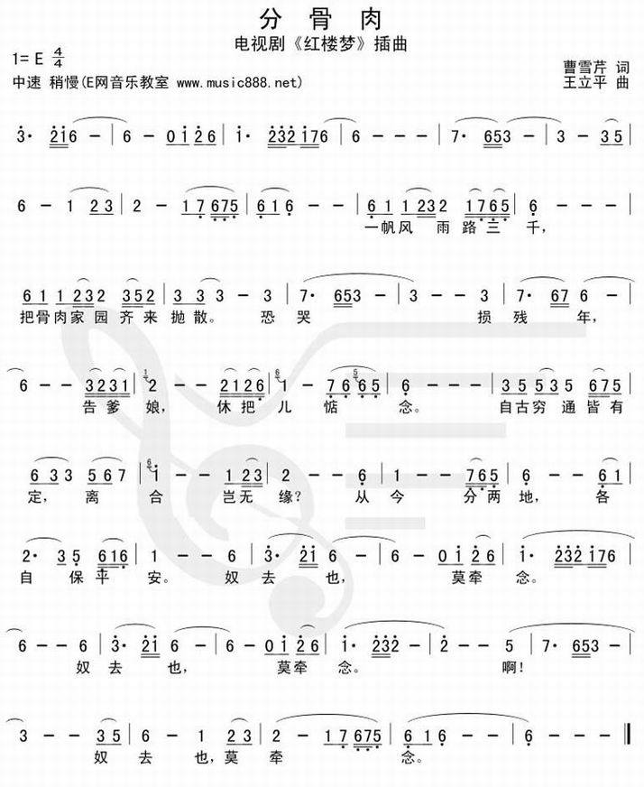 分骨肉-红楼梦(简谱 歌谱 歌曲简谱 合唱简谱 影视简谱)