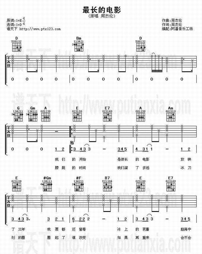 最长的电影-周杰伦(吉他谱 吉他曲谱 吉他六线谱 吉他歌谱 吉它谱 影视吉他谱)