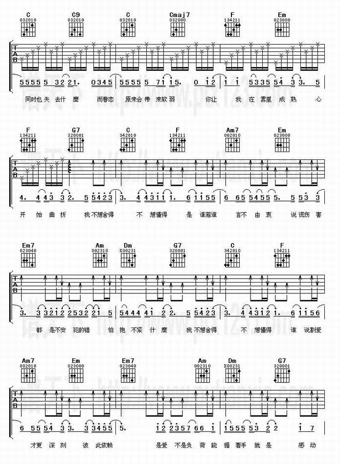 不想懂得-张韶涵(吉他谱 吉他曲谱 吉他六线谱 吉他歌谱 吉它谱 影视吉他谱)
