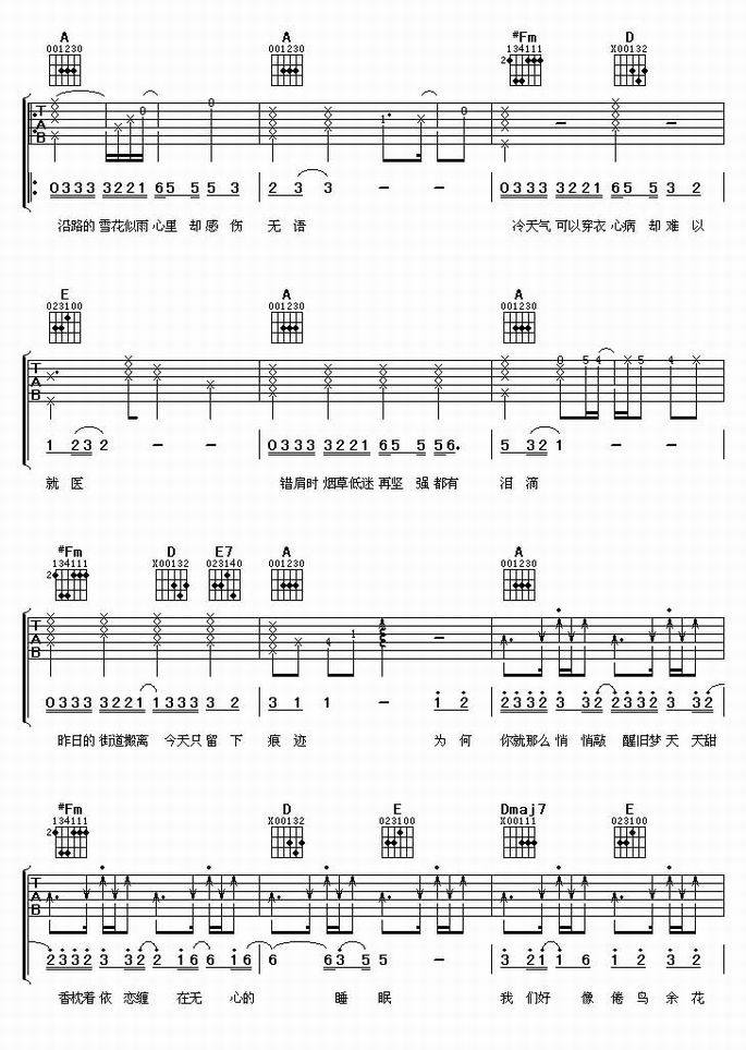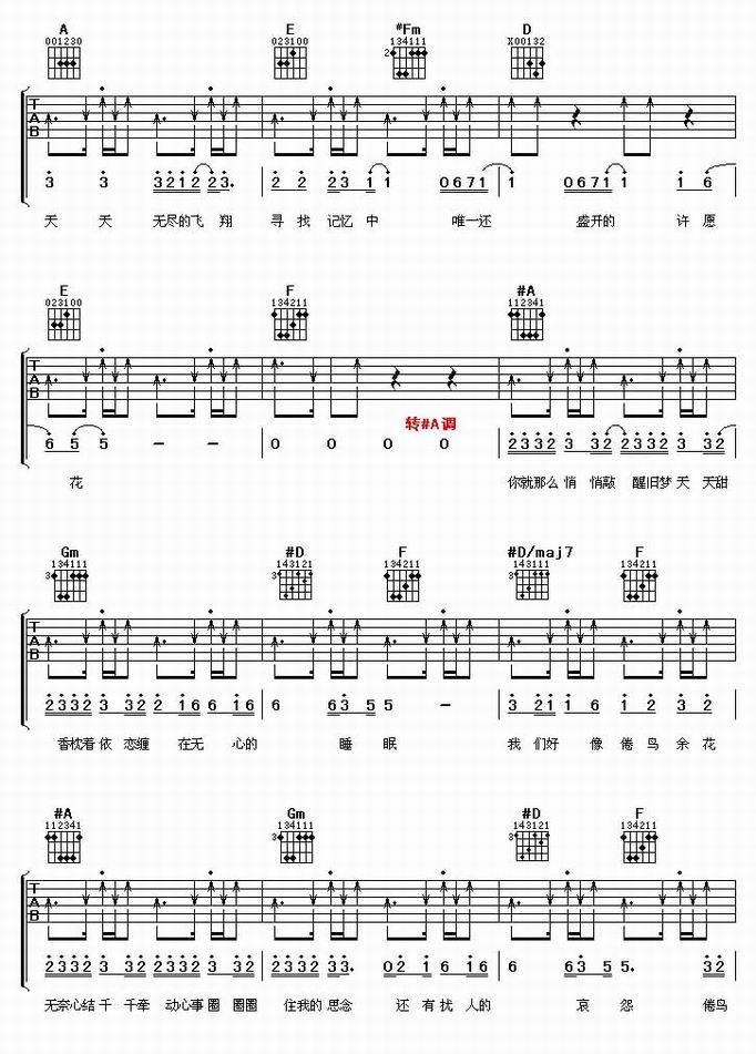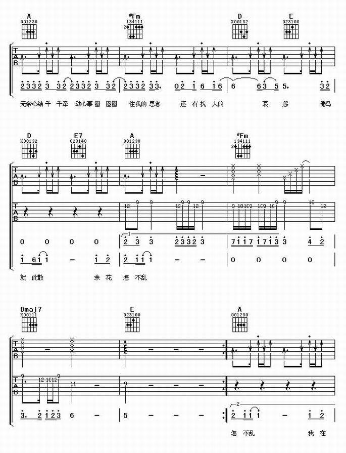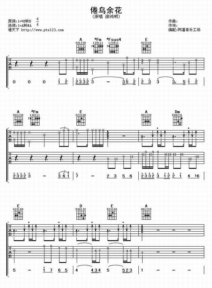 倦鸟余花-游鸿明(吉他谱 吉他曲谱 吉他六线谱 吉他歌谱 吉它谱 影视吉他谱)