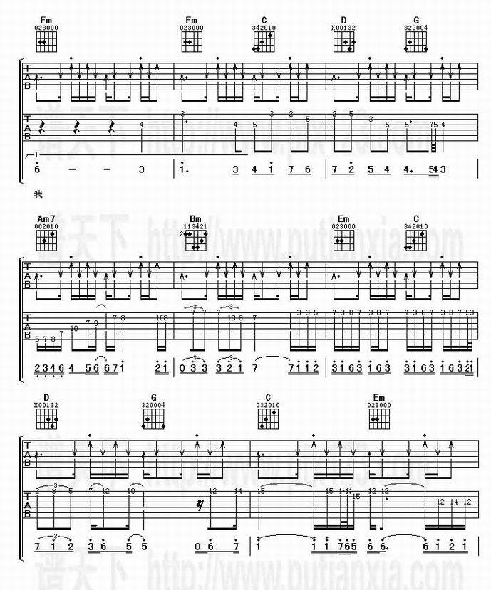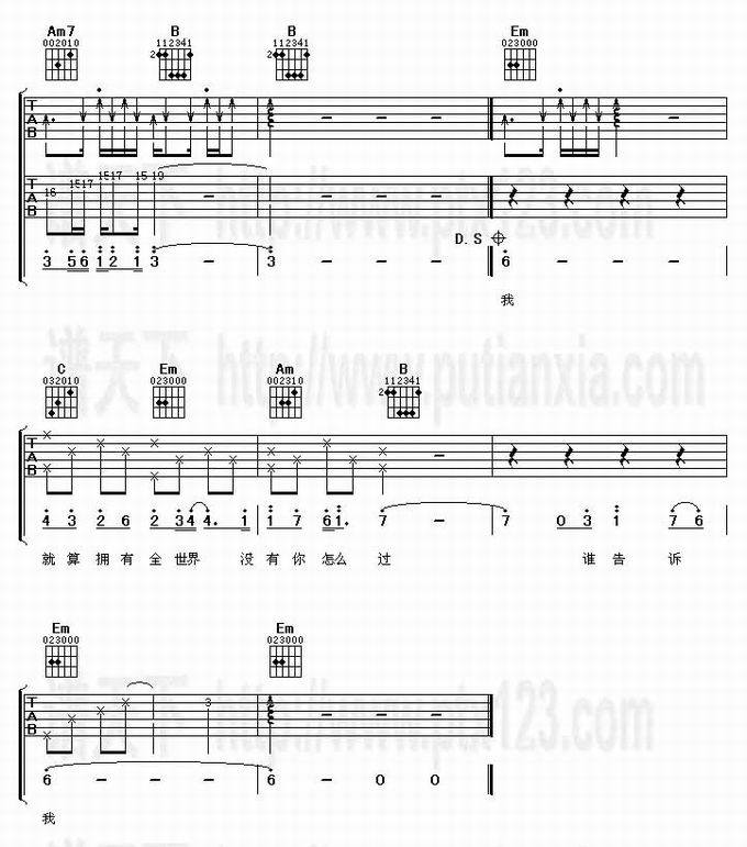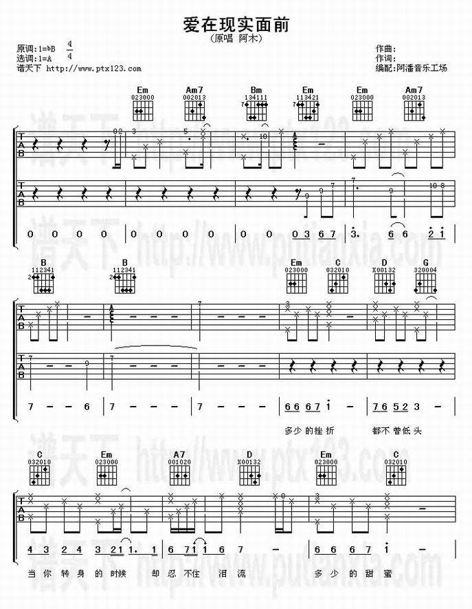 爱在现实面前-阿木(吉他谱 吉他曲谱 吉他六线谱 吉他歌谱 吉它谱 影视吉他谱)