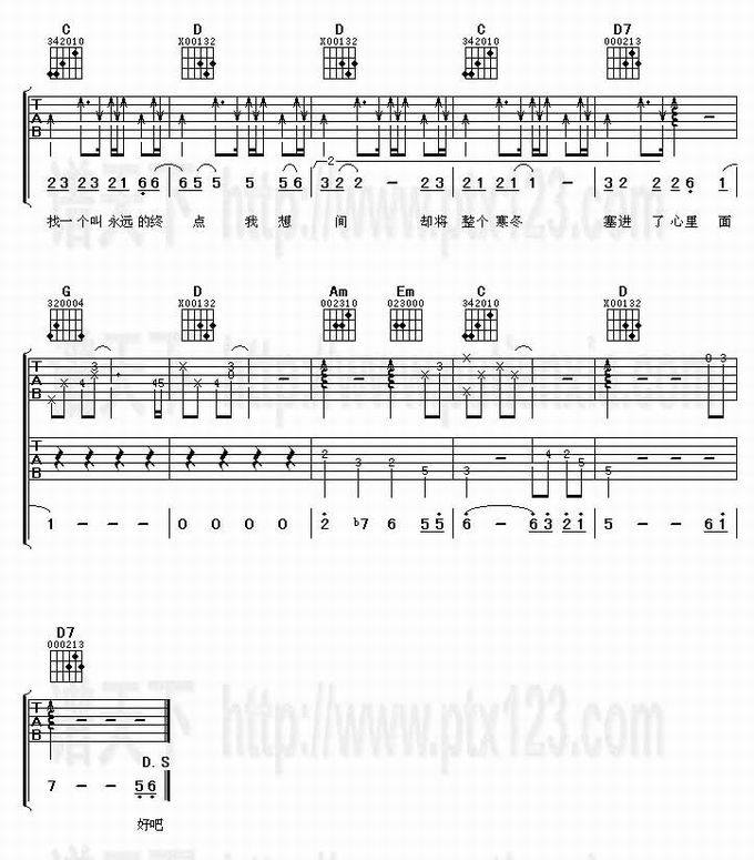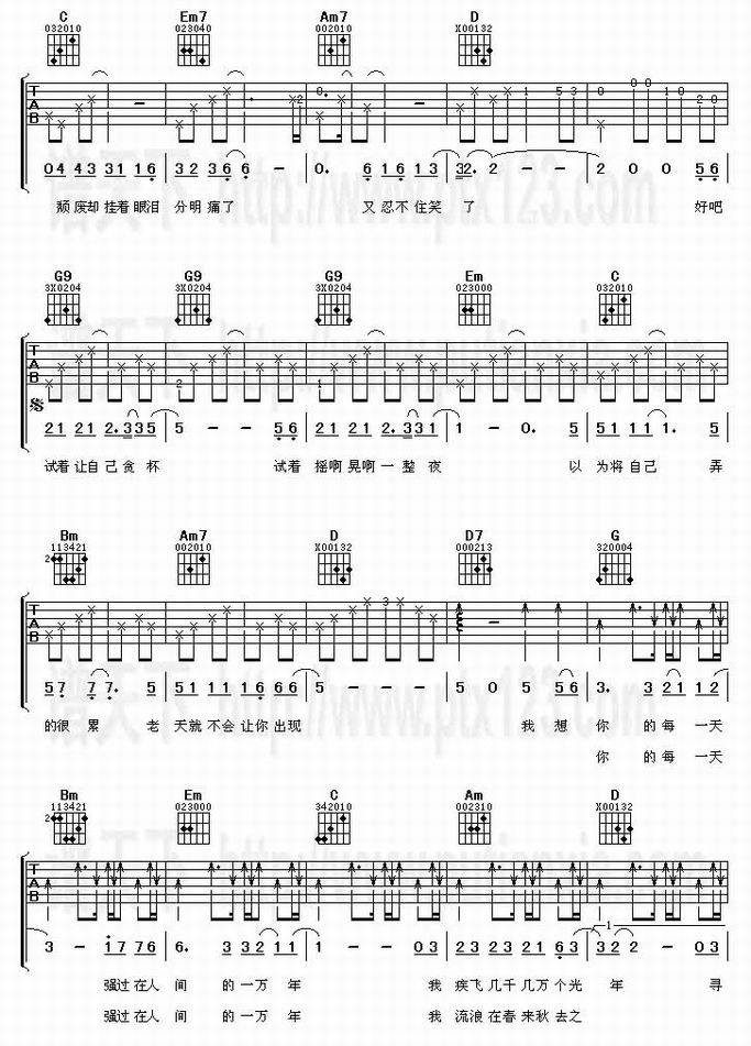 一天一万年-游鸿明(吉他谱 吉他曲谱 吉他六线谱 吉他歌谱 吉它谱 影视吉他谱)