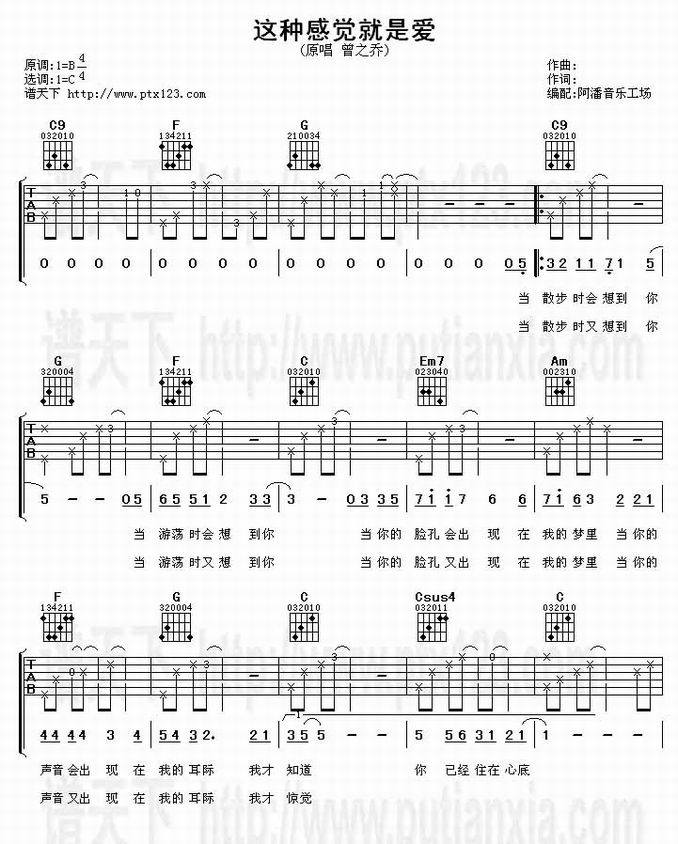 这种感觉就是爱-曾之乔(吉他谱 吉他曲谱 吉他六线谱 吉他歌谱 吉它谱 影视吉他谱)