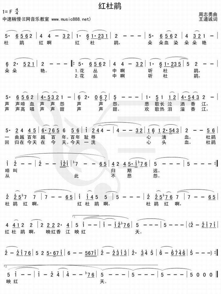红杜鹃-吴碧霞(简谱 歌谱 歌曲简谱 合唱简谱 影视简谱)