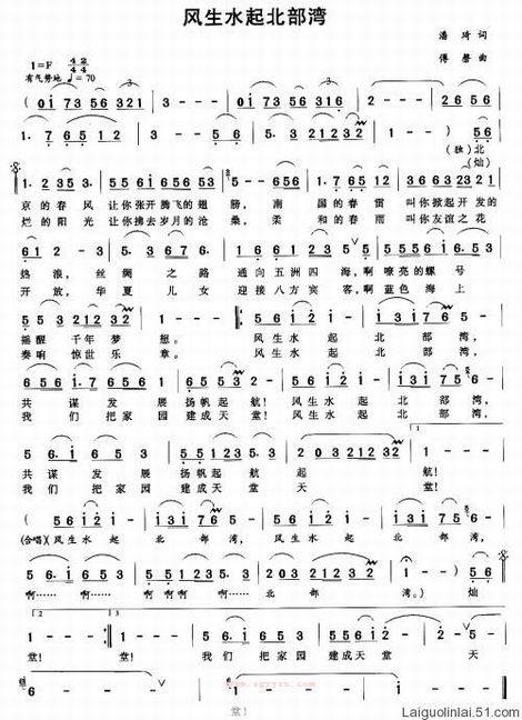风生水起北部湾-吴碧霞(简谱 歌谱 歌曲简谱 合唱简谱 影视简谱)