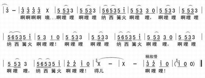 啊哩哩 阿哩哩,纳西篝火 啊哩哩,啊哩哩 阿哩哩,纳西篝火 啊哩哩,啊哩哩 阿哩哩,纳西篝火 啊哩哩,啊哩哩 阿哩哩,纳西篝火 啊哩哩,