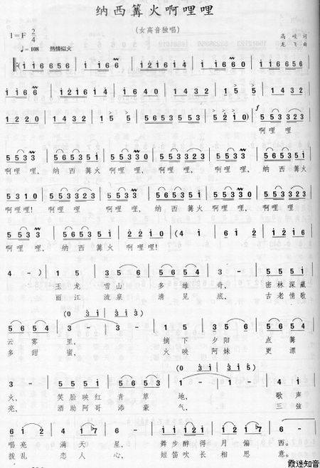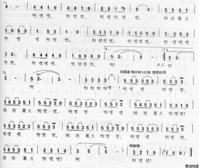纳西篝火啊哩哩-吴碧霞(简谱 歌谱 歌曲简谱 合唱简谱 民歌简谱 影视简谱)