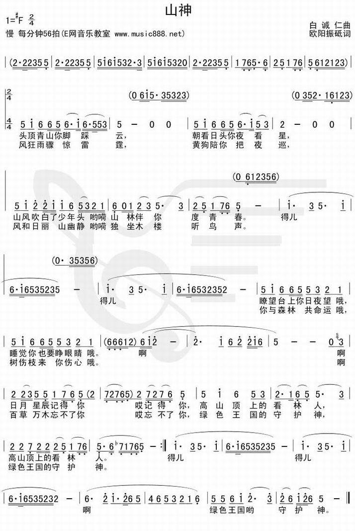 山神-吴碧霞(简谱 歌谱 歌曲简谱 合唱简谱 民歌简谱 影视简谱)