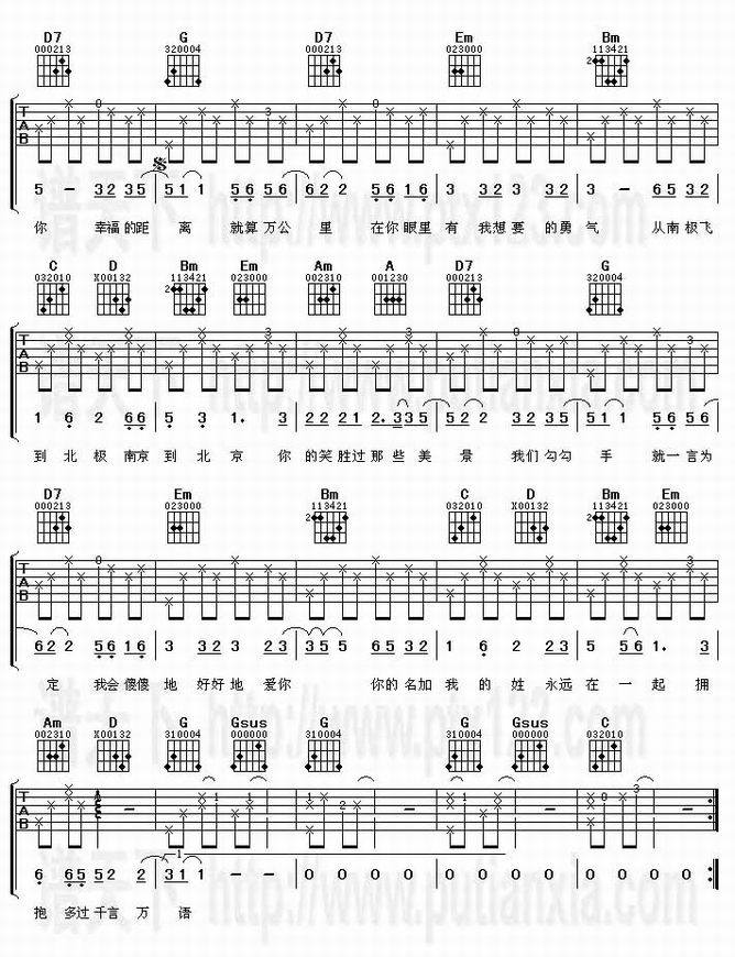 幸福的距离-刘畊宏(吉他谱 吉他曲谱 吉他六线谱 吉他歌谱 吉它谱 影视吉他谱)