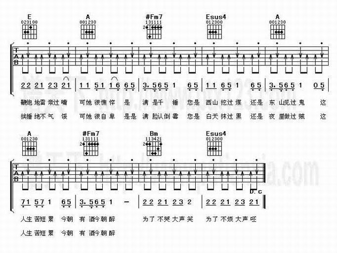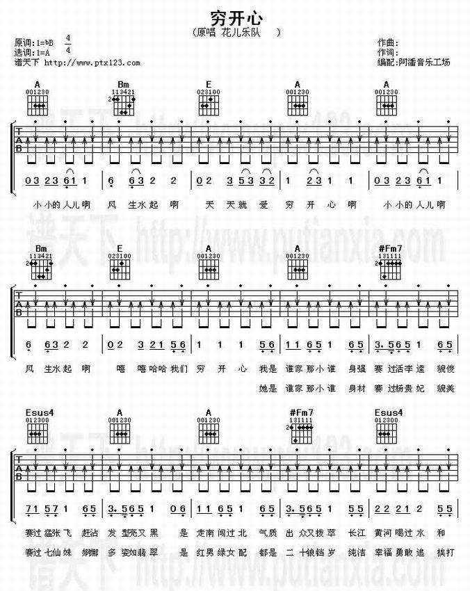 穷开心-花儿乐队(吉他谱 吉他曲谱 吉他六线谱 吉他歌谱 吉它谱 影视吉他谱)