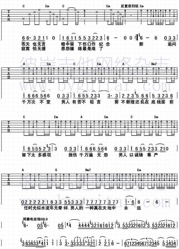 男人底线-韩磊(吉他谱 吉他曲谱 吉他六线谱 吉他歌谱 吉它谱 影视吉他谱)