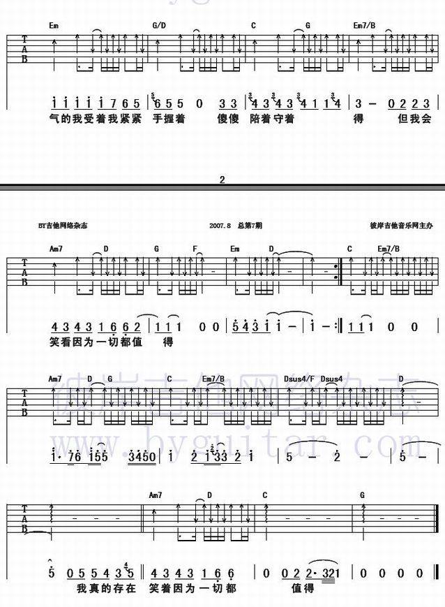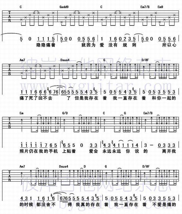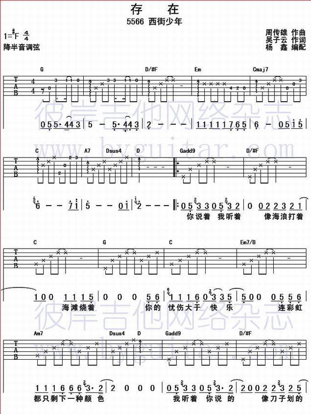 存在-5566(吉他谱 吉他曲谱 吉他六线谱 吉他歌谱 吉它谱 影视吉他谱)
