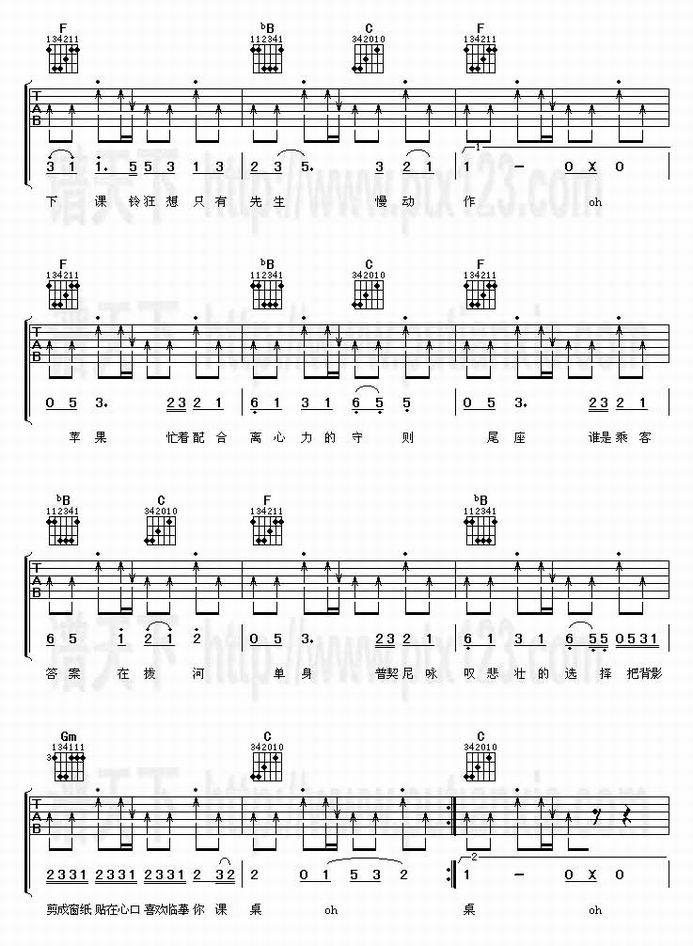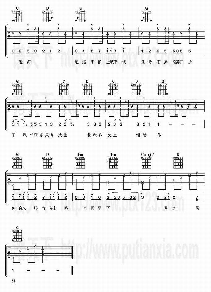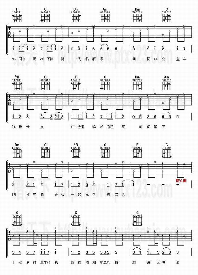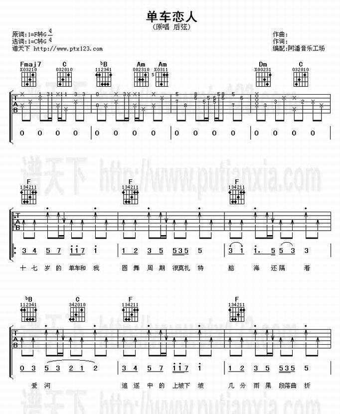 单车恋人-后弦(吉他谱 吉他曲谱 吉他六线谱 吉他歌谱 吉它谱 影视吉他谱)