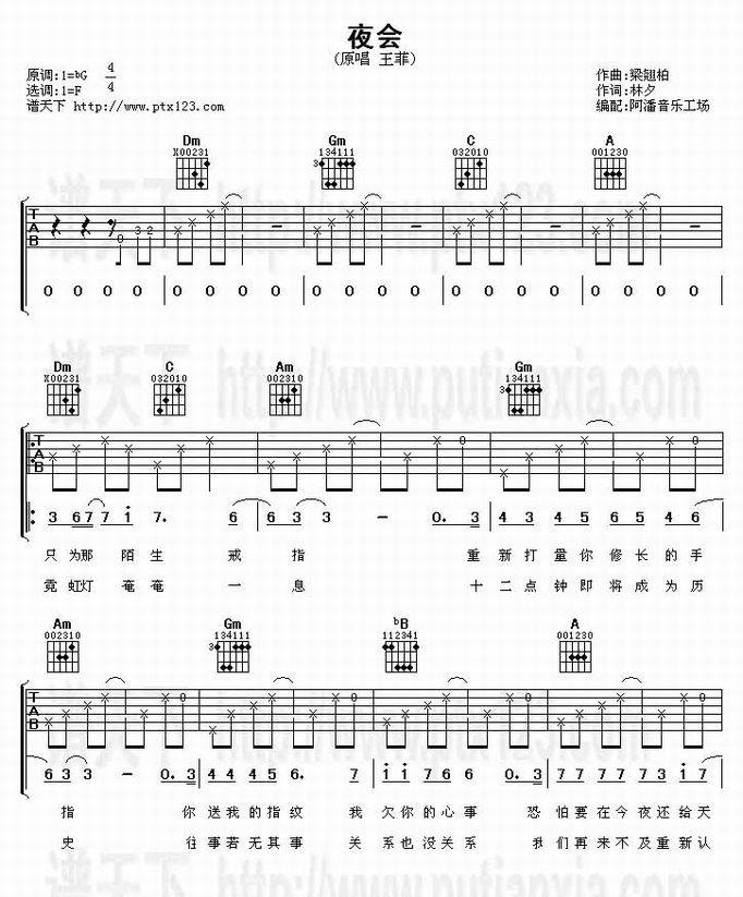 夜会-王菲(吉他谱 吉他曲谱 吉他六线谱 吉他歌谱 吉它谱 影视吉他谱)