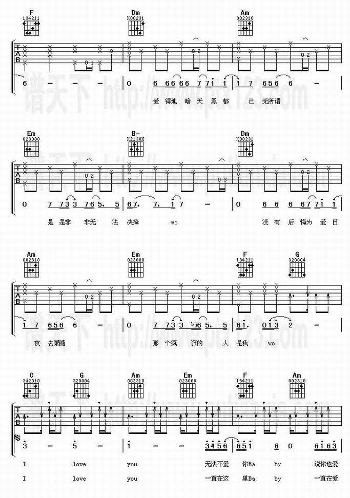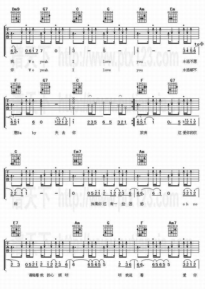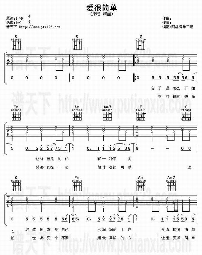 爱很简单-陶喆(吉他谱 吉他曲谱 吉他六线谱 吉他歌谱 吉它谱 影视吉他谱)