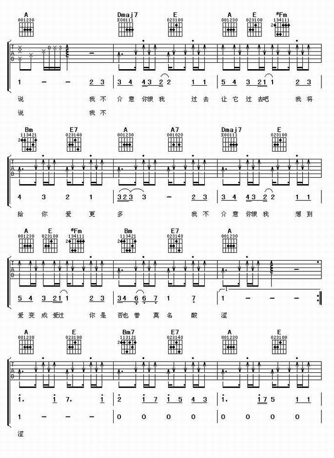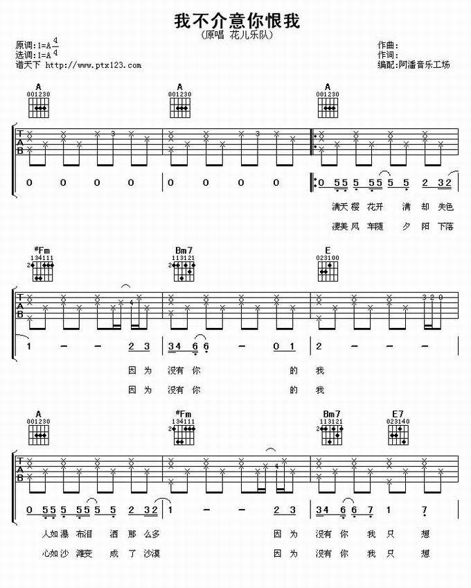 我不介意你恨我-花儿乐队(吉他谱 吉他曲谱 吉他六线谱 吉他歌谱 吉它谱 影视吉他谱)