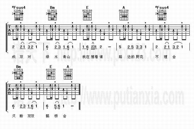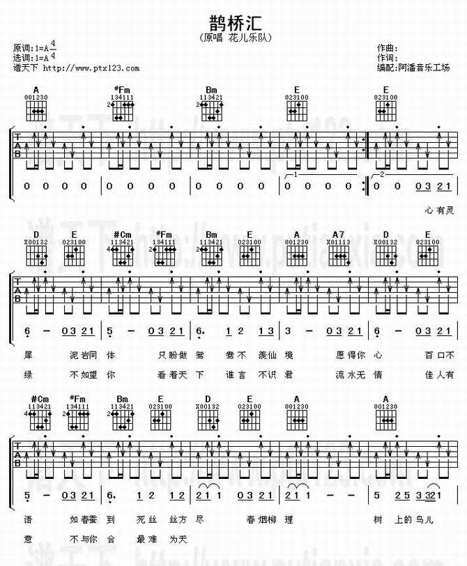 鹊桥汇-花儿乐队(吉他谱 吉他曲谱 吉他六线谱 吉他歌谱 吉它谱 影视吉他谱)