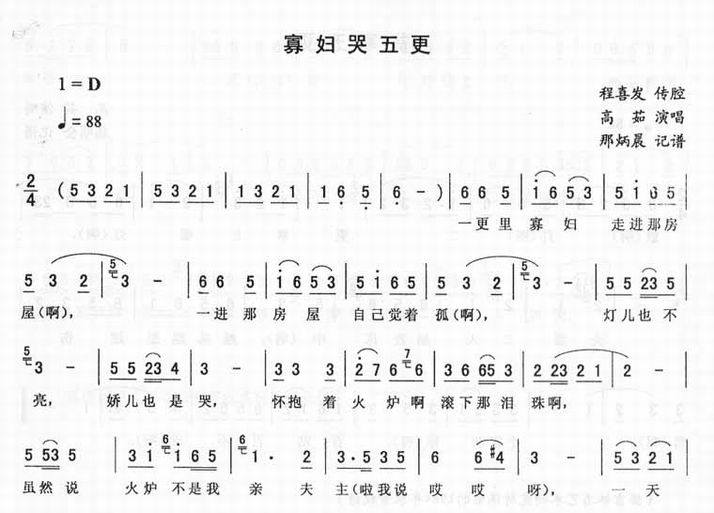 >> 寡妇哭五更-二人转简谱