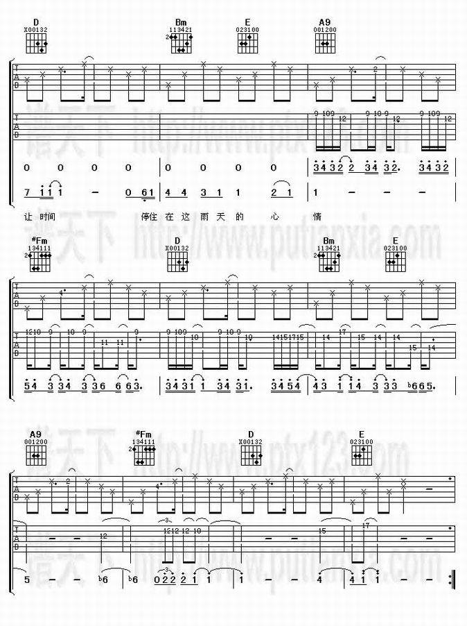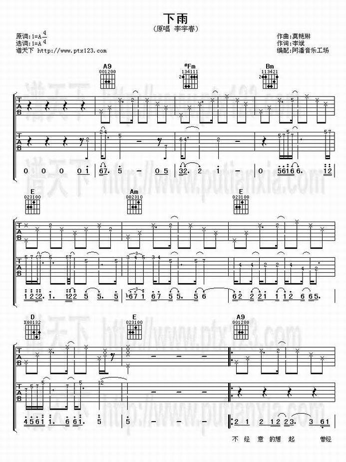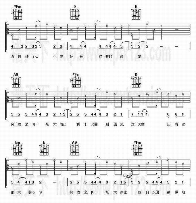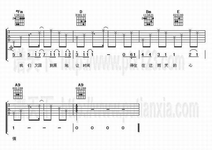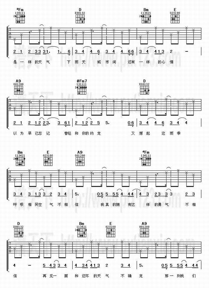 下雨-李宇春(吉他谱 吉他曲谱 吉他六线谱 吉他歌谱 吉它谱 影视吉他谱)