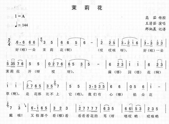 茉莉花-二人转简谱 二人转乐谱 二人转曲谱 东北二人转