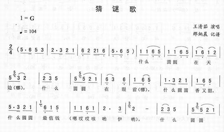 猜谜歌-二人转简谱 二人转乐谱 二人转曲谱 东北二人转