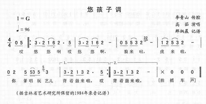 悠孩子调-二人转简谱 二人转乐谱 二人转曲谱 东北二人转