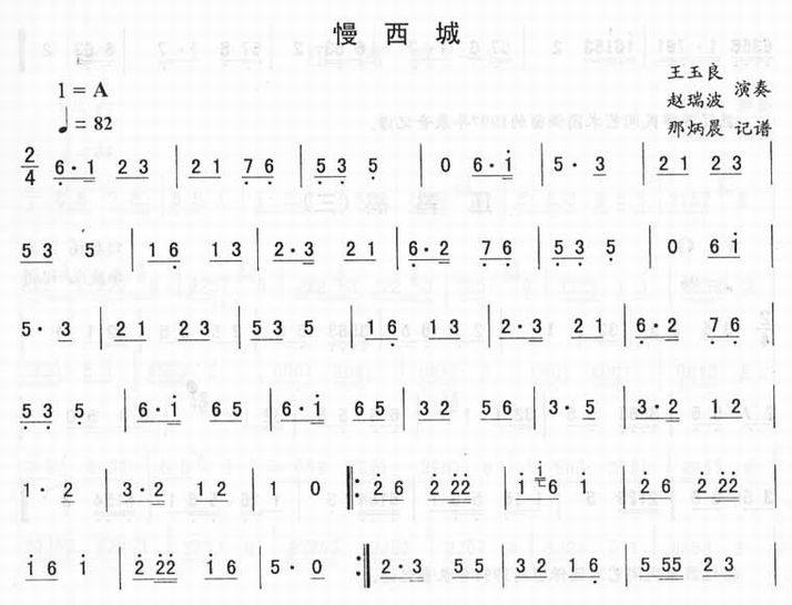 慢西城_二人转伴奏简谱 二人转简谱 二人转乐谱 二人转曲谱 东北二人转