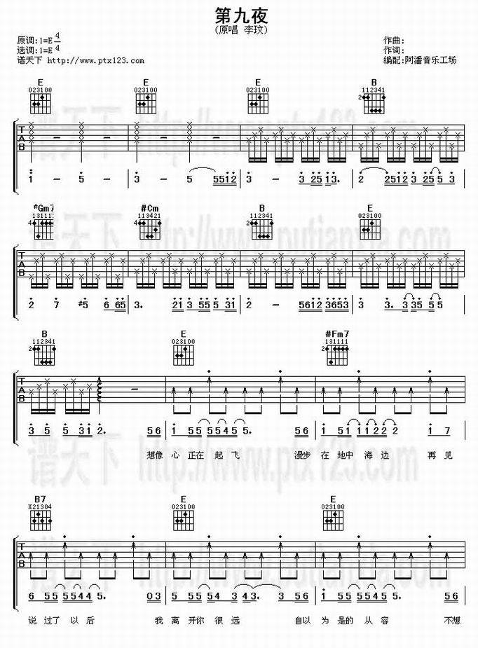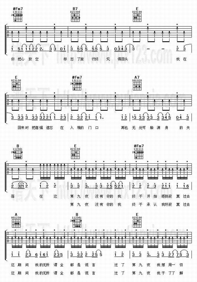 第九夜-李玟(吉他谱 吉他曲谱 吉他六线谱 吉他歌谱 吉它谱 影视吉他谱)