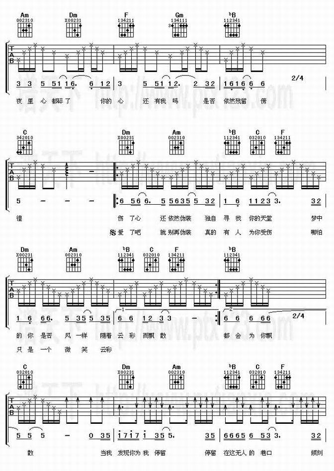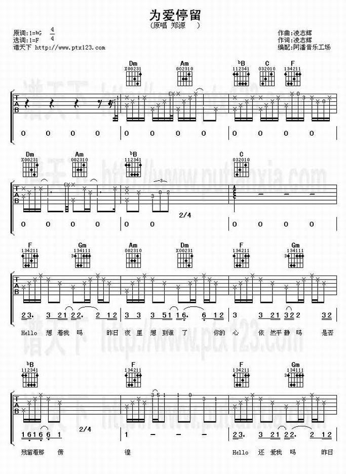 为爱停留-郑源(吉他谱 吉他曲谱 吉他六线谱 吉他歌谱 吉它谱 影视吉他谱)