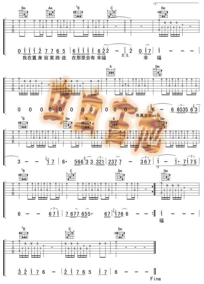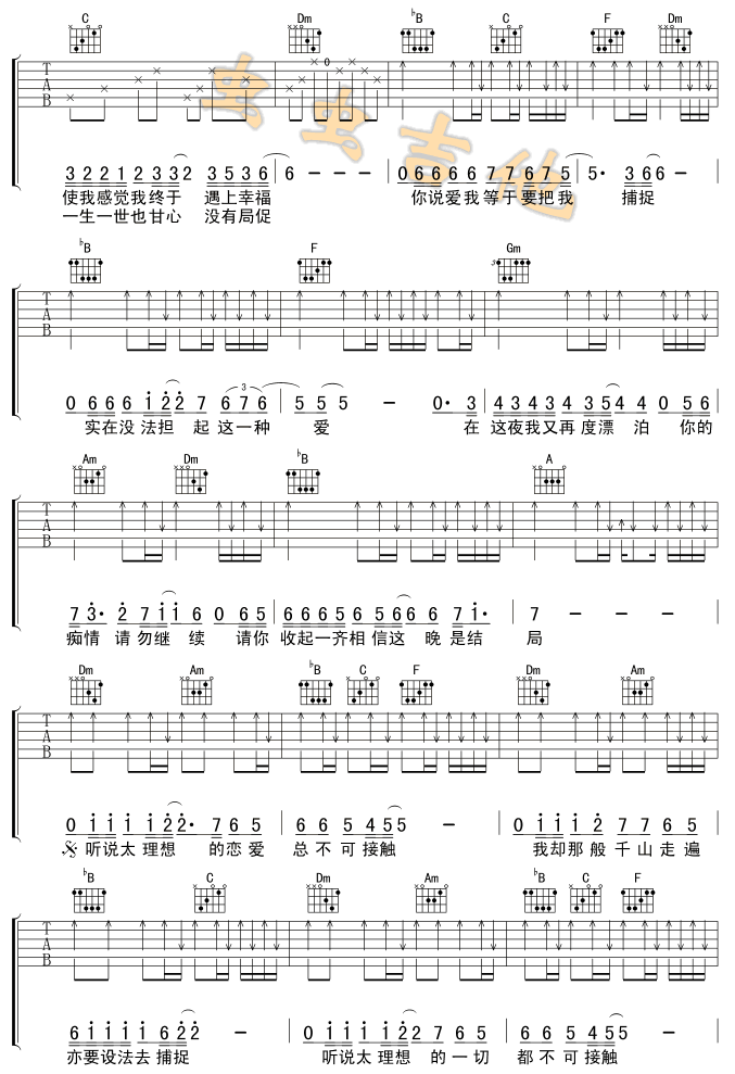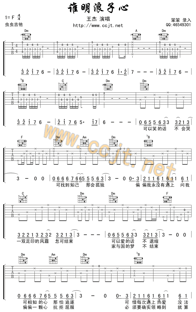 谁明浪子心-王杰(吉他谱 吉他曲谱 吉他六线谱 吉他歌谱 吉它谱 影视吉他谱)