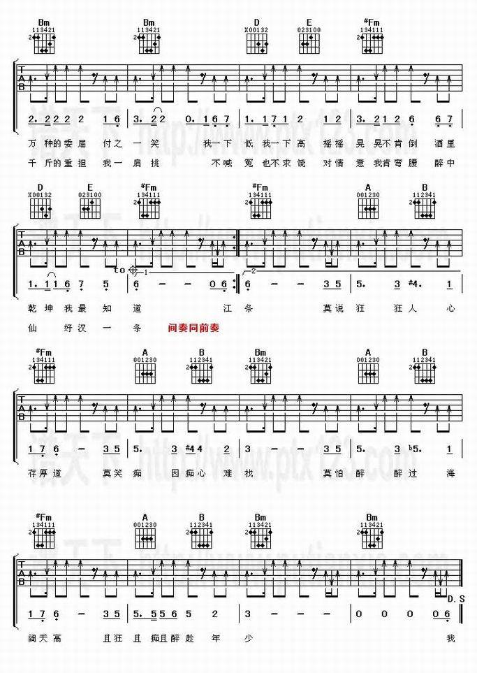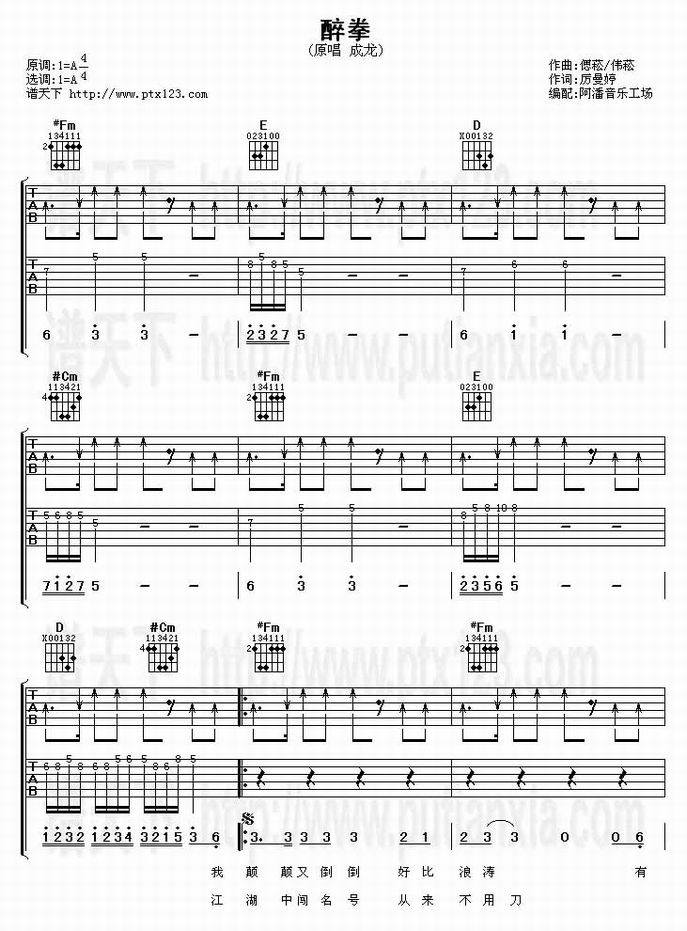 醉拳-成龙(吉他谱 吉他曲谱 吉他六线谱 吉他歌谱 吉它谱 影视吉他谱)