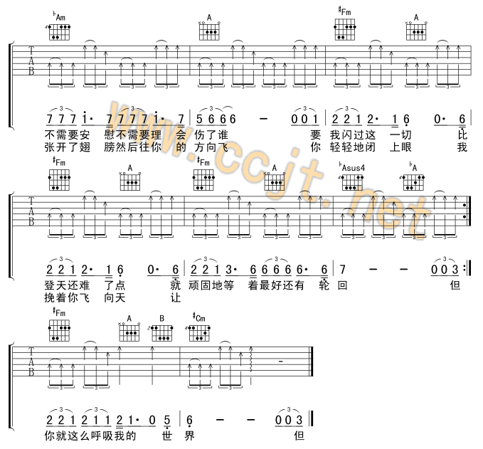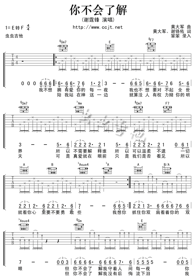 你不会了解-谢霆峰(吉他谱 吉他曲谱 吉他六线谱 吉他歌谱 吉它谱 影视吉他谱)