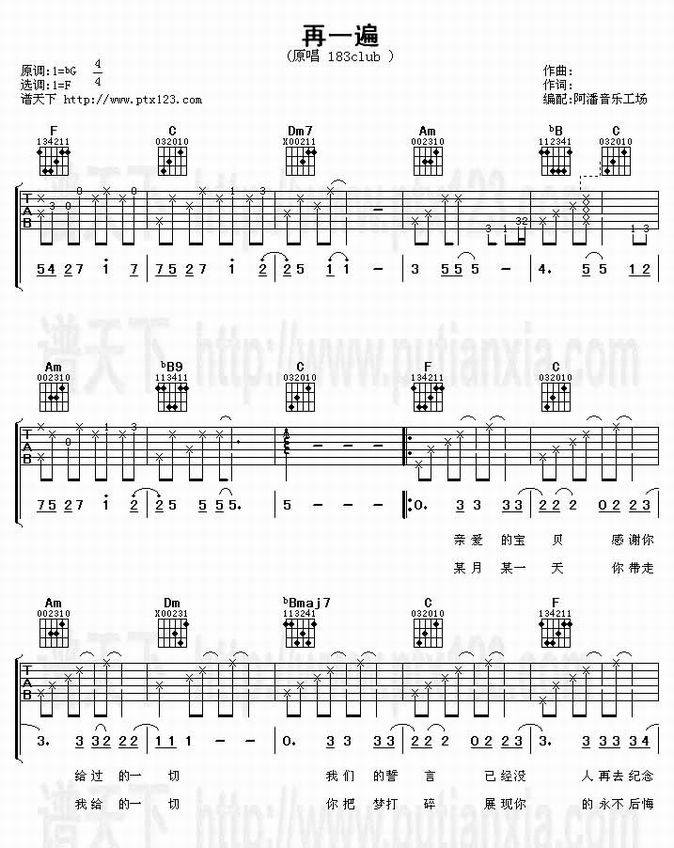 再一遍-183Club(吉他谱 吉他曲谱 吉他六线谱 吉他歌谱 吉它谱 影视吉他谱)