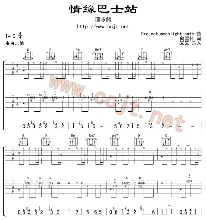 情缘巴士站-谭咏麟(吉他谱 吉他曲谱 吉他六线谱 吉他歌谱 吉它谱 影视吉他谱)
