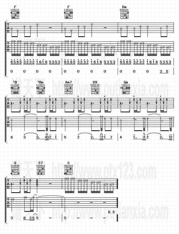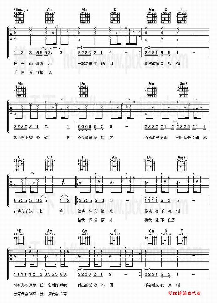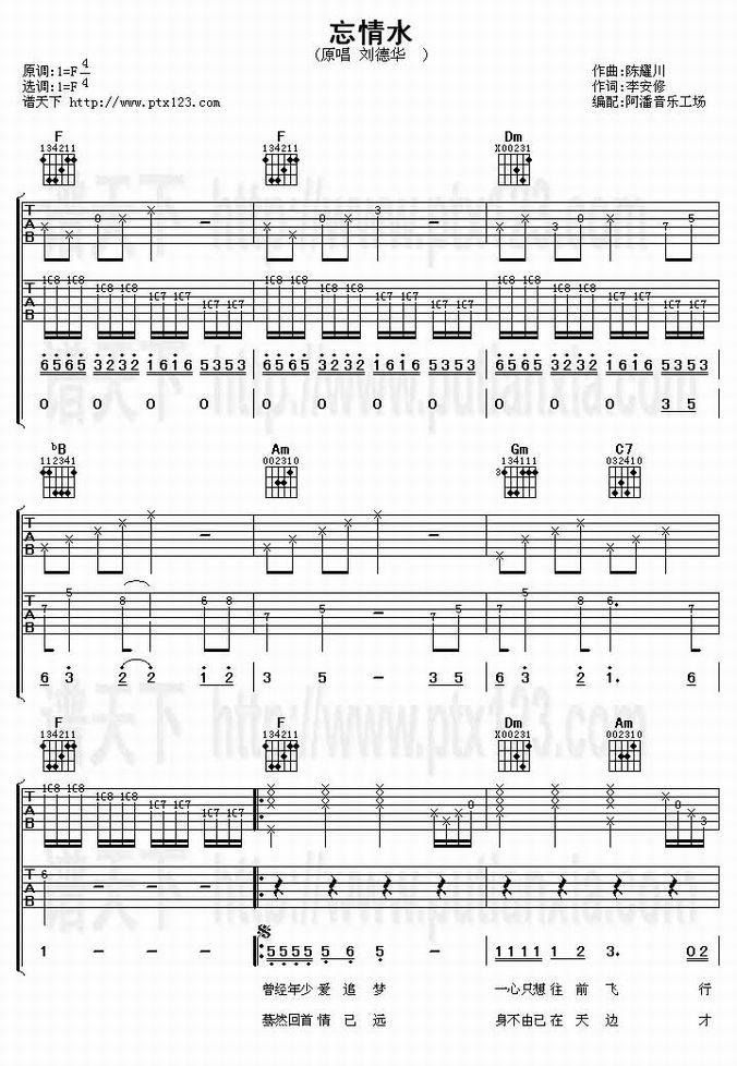 忘情水-刘德华(吉他谱 吉他曲谱 吉他六线谱 吉他歌谱 吉它谱 影视吉他谱)