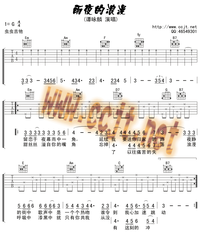 雨夜的浪漫-谭咏麟(吉他谱 吉他曲谱 吉他六线谱 吉他歌谱 吉它谱 影视吉他谱)
