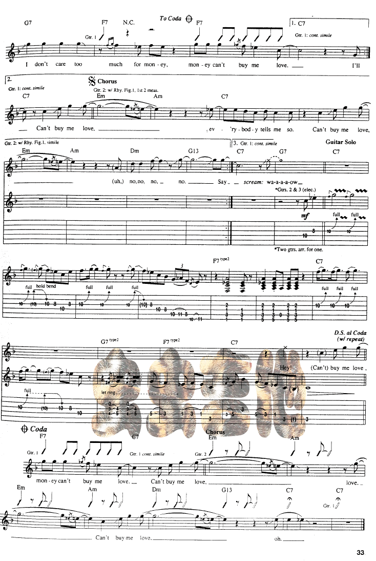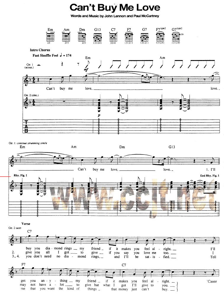 Can"t Buy Me Love-Beatles披头士(吉他谱 吉他曲谱 吉他六线谱 吉他歌谱 吉它谱 影视吉他谱)