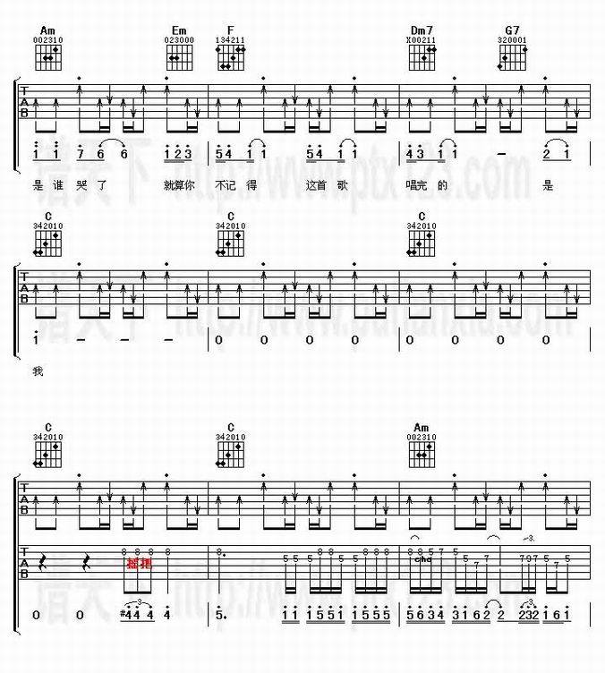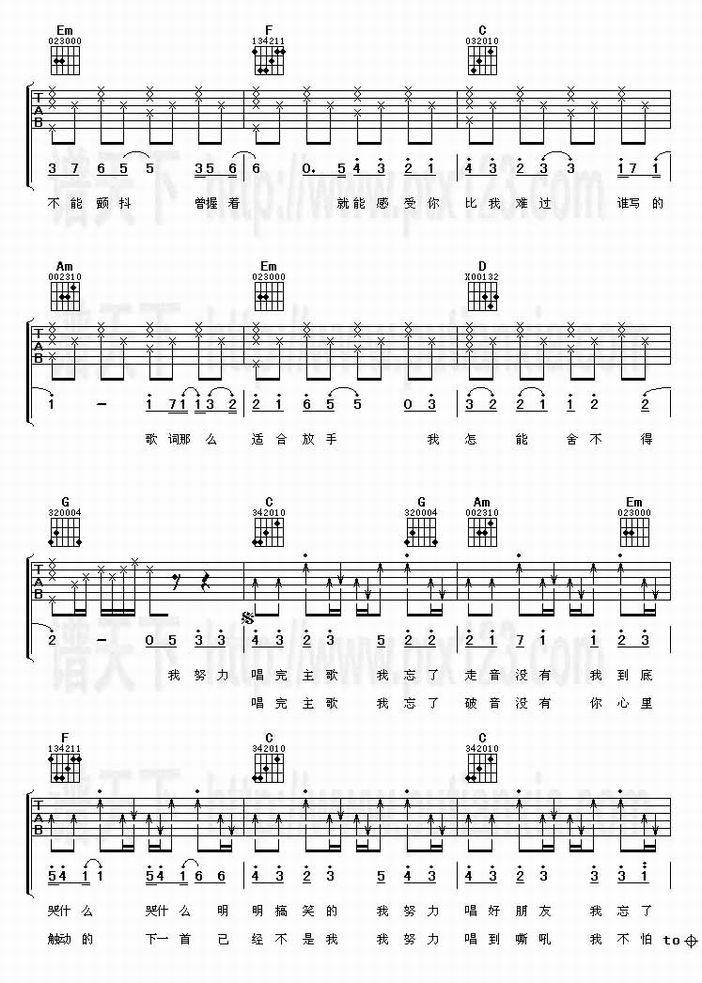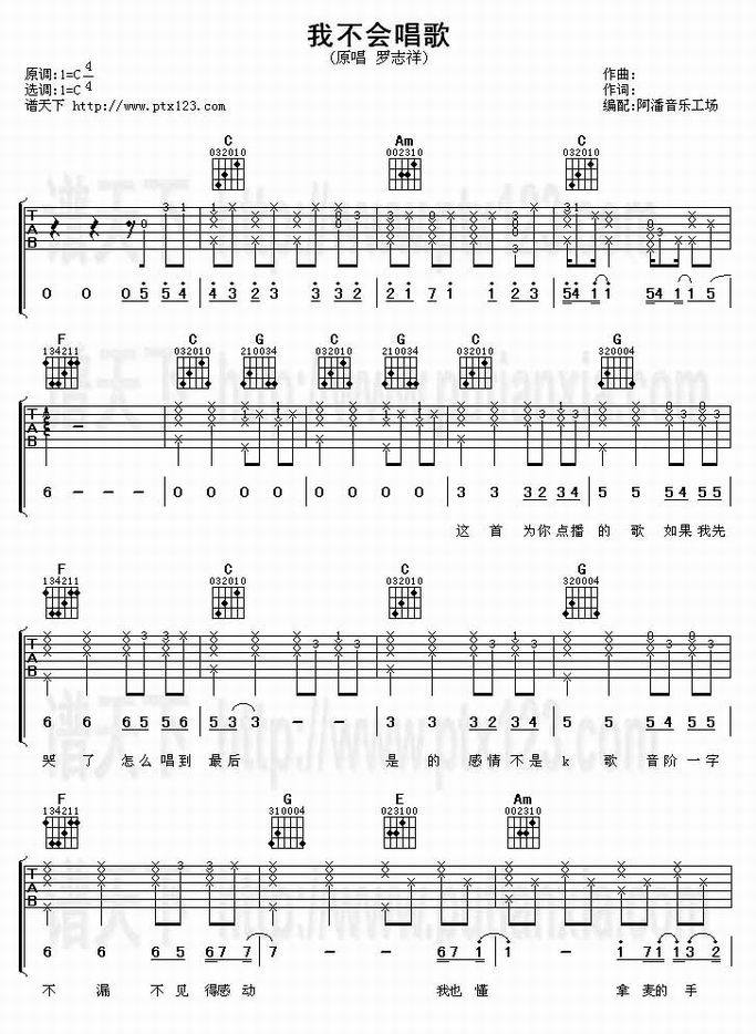 我不会唱歌-罗志祥(吉他谱 吉他曲谱 吉他六线谱 吉他歌谱 吉它谱 影视吉他谱)