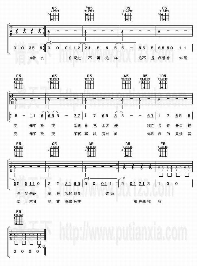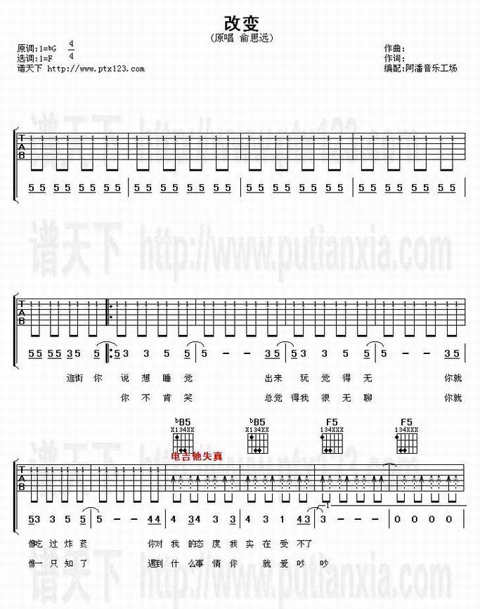 改变-俞思远&BiZ乐团(吉他谱 吉他曲谱 吉他六线谱 吉他歌谱 吉它谱 影视吉他谱)
