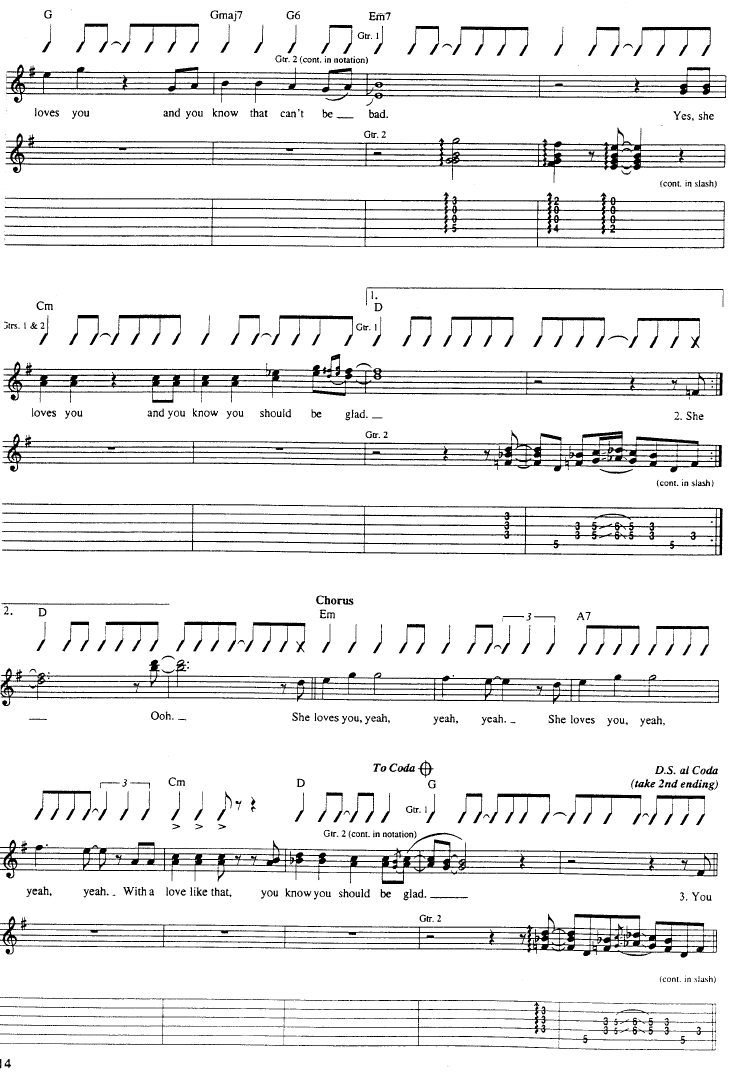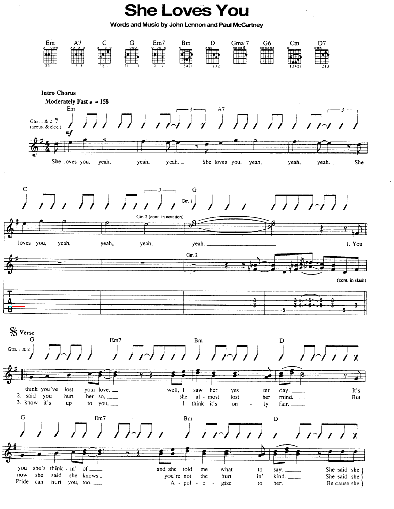She Loves You-Beatles披头士(吉他谱 吉他曲谱 吉他六线谱 吉他歌谱 吉它谱 影视吉他谱)