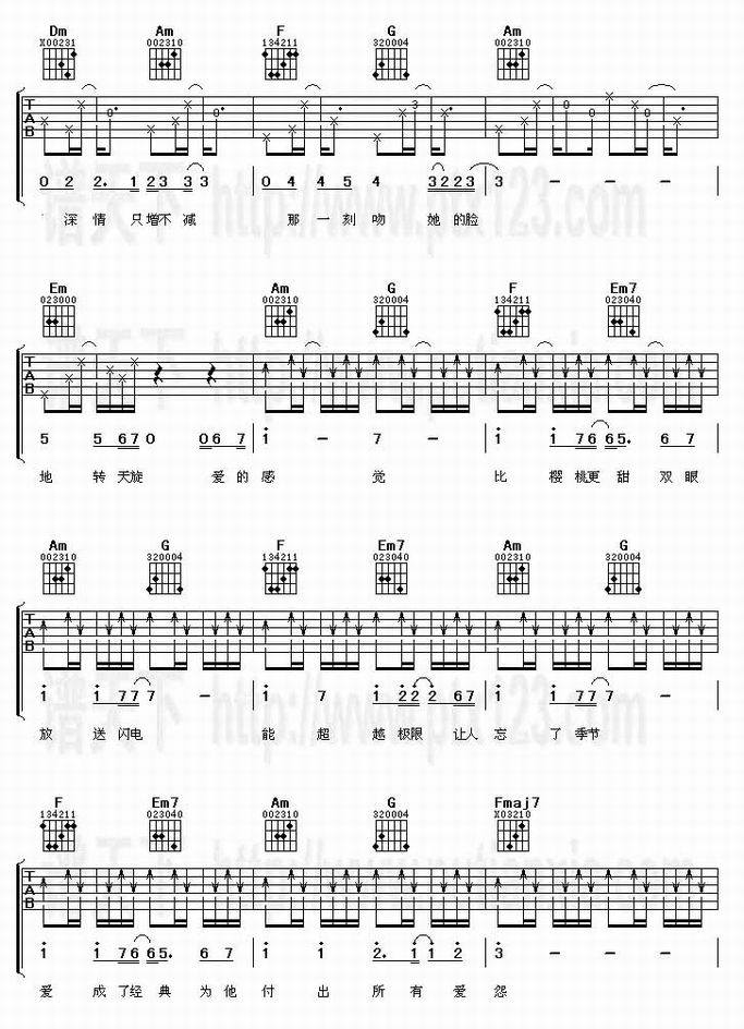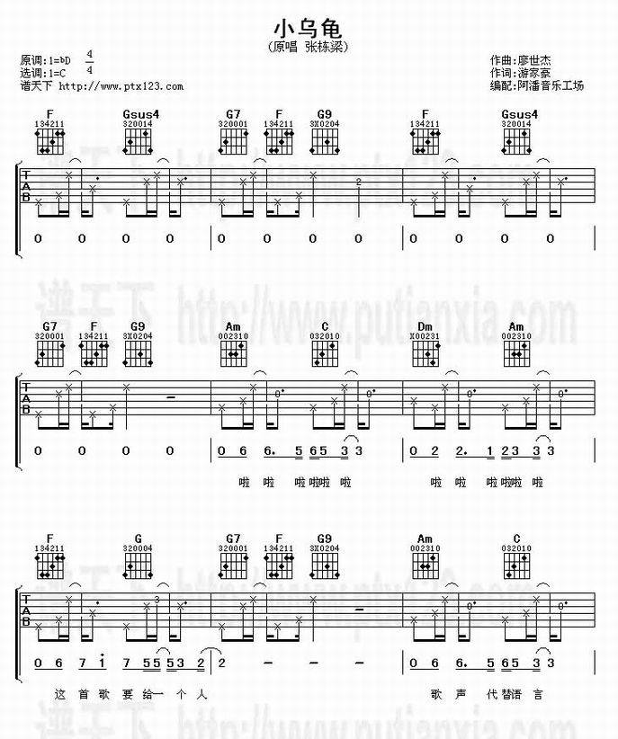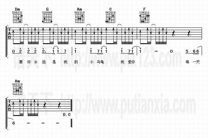 小乌龟-张栋梁(吉他谱 吉他曲谱 吉他六线谱 吉他歌谱 吉它谱 影视吉他谱)