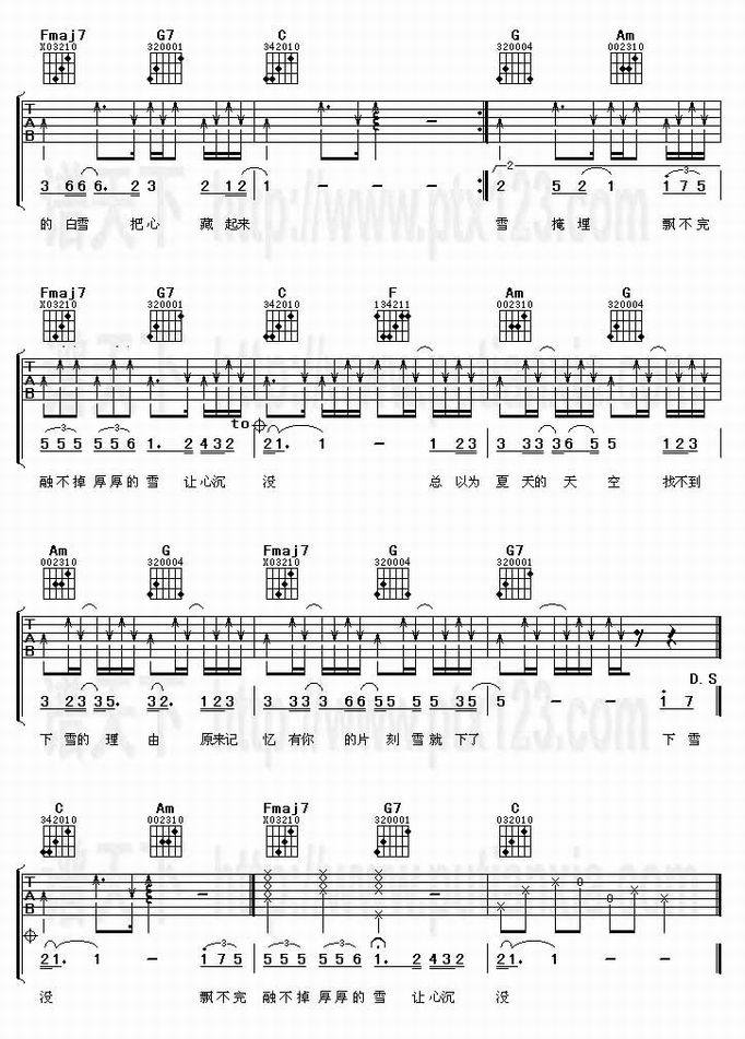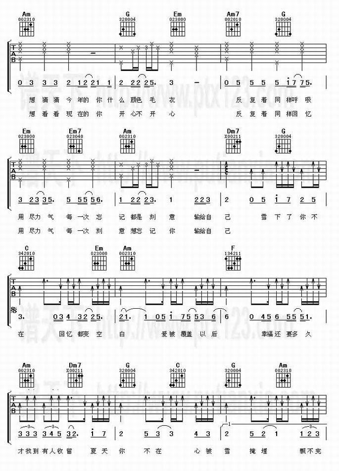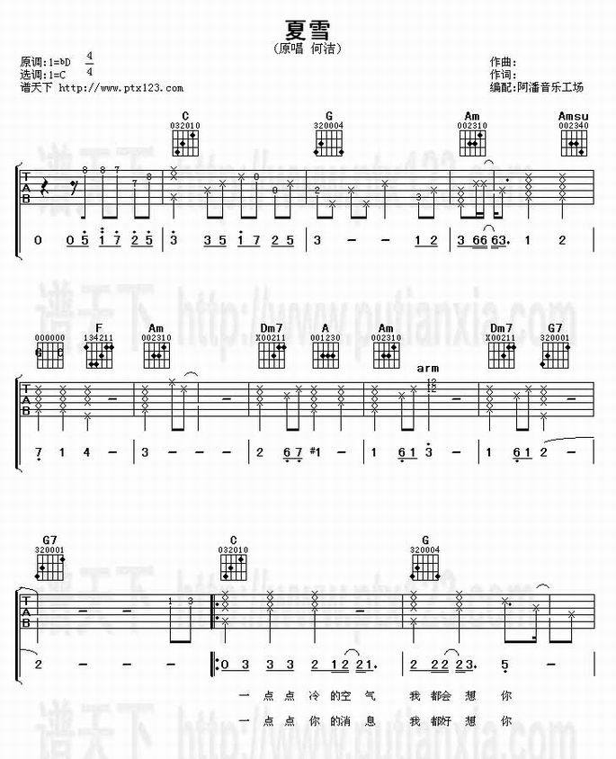 夏雪-何洁(吉他谱 吉他曲谱 吉他六线谱 吉他歌谱 吉它谱 影视吉他谱)