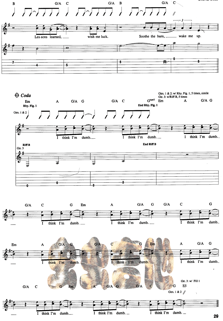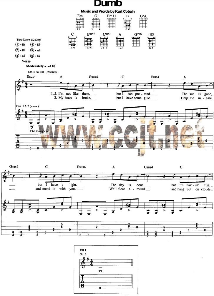 Dumb-Nirvana涅磐乐队(吉他谱 吉他曲谱 吉他六线谱 吉他歌谱 吉它谱 影视吉他谱)