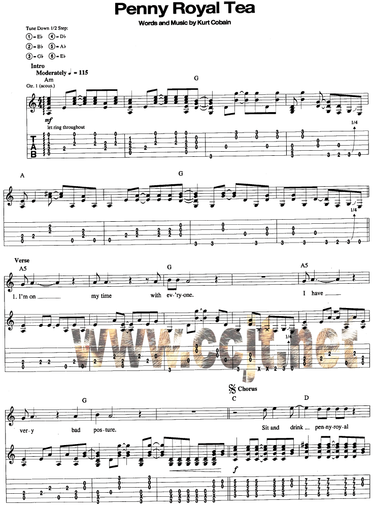Penny Royal Tea-Nirvana涅磐乐队(吉他谱 吉他曲谱 吉他六线谱 吉他歌谱 吉它谱 影视吉他谱)