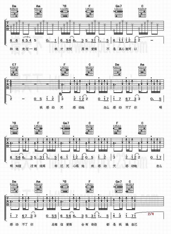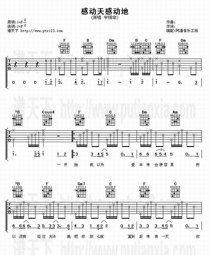 感动天感动地-宇桐非(吉他谱 吉他曲谱 吉他六线谱 吉他歌谱 吉它谱 影视吉他谱)