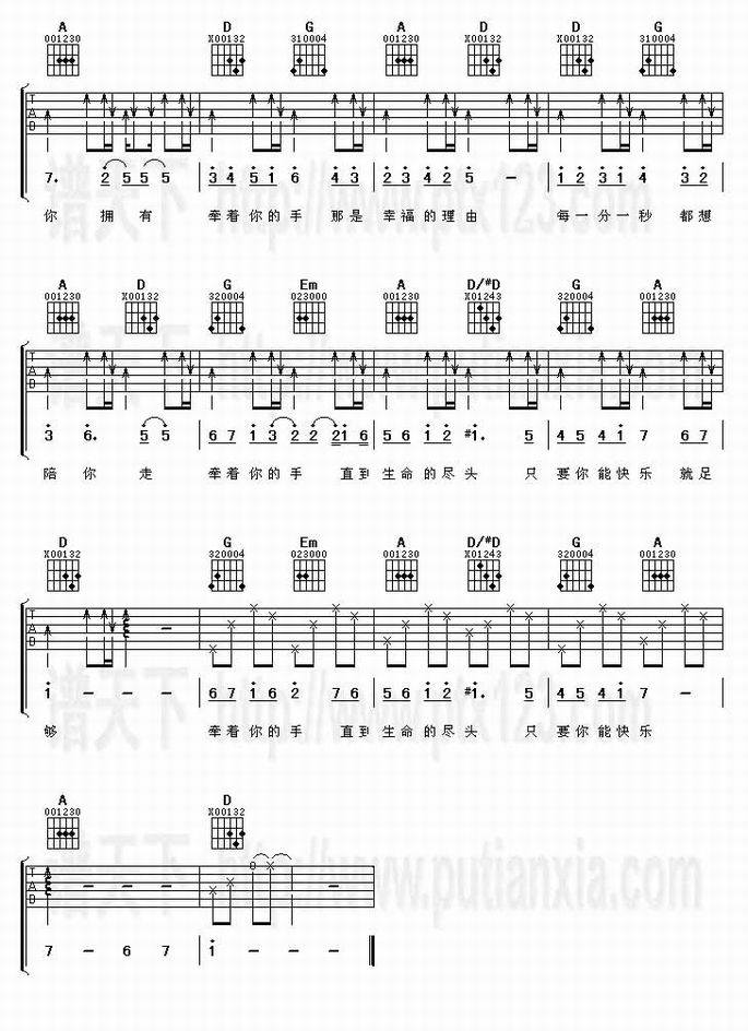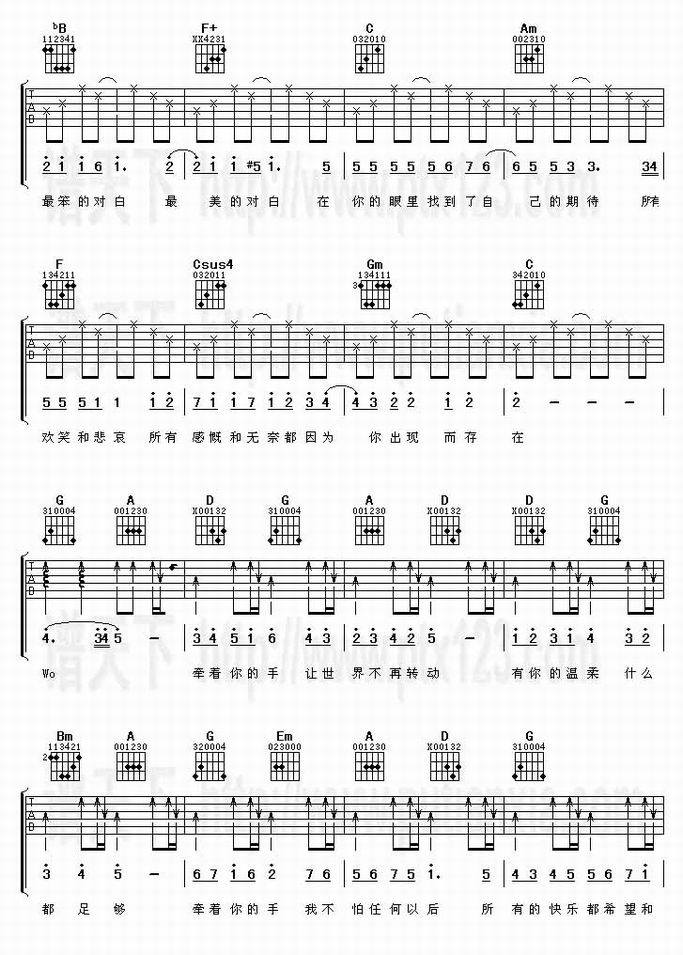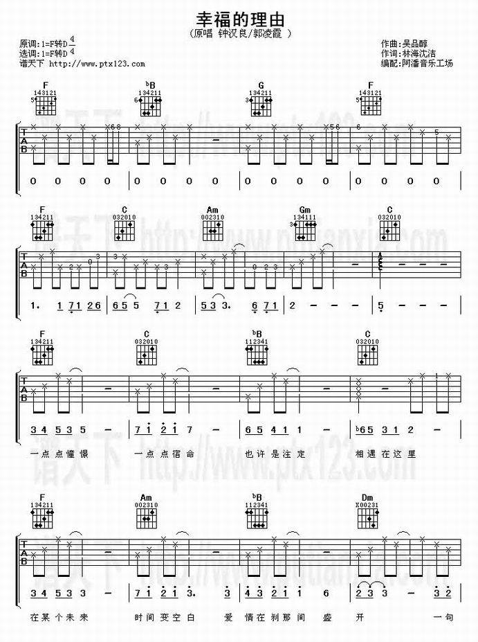 幸福的理由-钟汉良/郭凌霞(吉他谱 吉他曲谱 吉他六线谱 吉他歌谱 吉它谱 影视吉他谱)