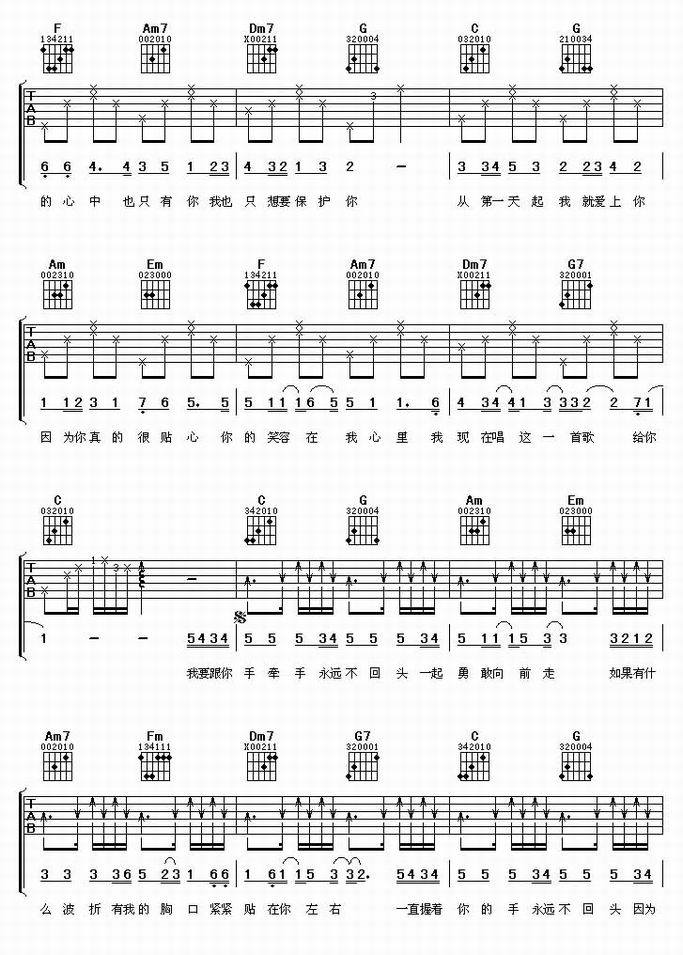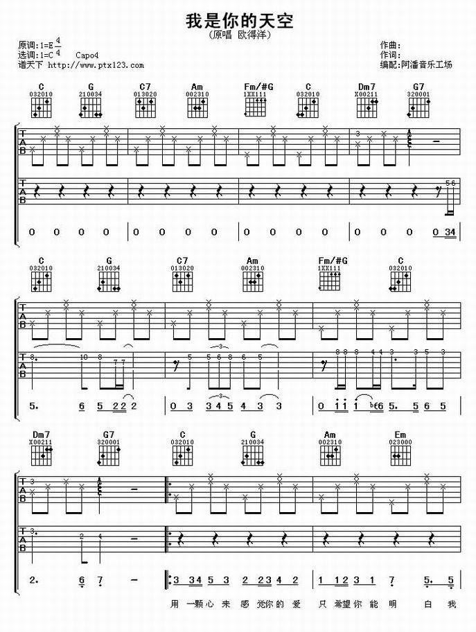 我是你的天空-欧得洋(吉他谱 吉他曲谱 吉他六线谱 吉他歌谱 吉它谱 影视吉他谱)