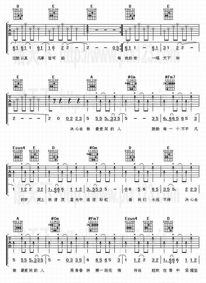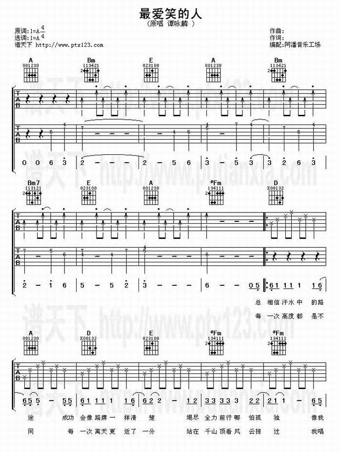 最爱笑的人-谭咏麟(吉他谱 吉他曲谱 吉他六线谱 吉他歌谱 吉它谱 影视吉他谱)